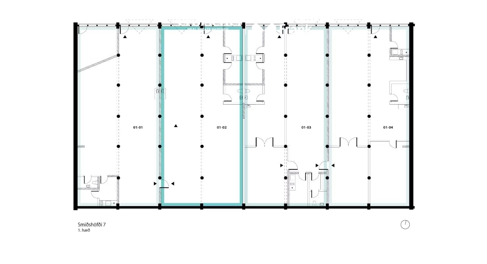 Fljótlega losna til leigu tvö ríflega 190 fm iðnaðarbil á þessum vinsæla stað á Höfða. Um er að ræða sitthvorn enda byggingar, merkt annars vegar númer 01-01 á grunnmynd og hins vegar nr. 01-04.
