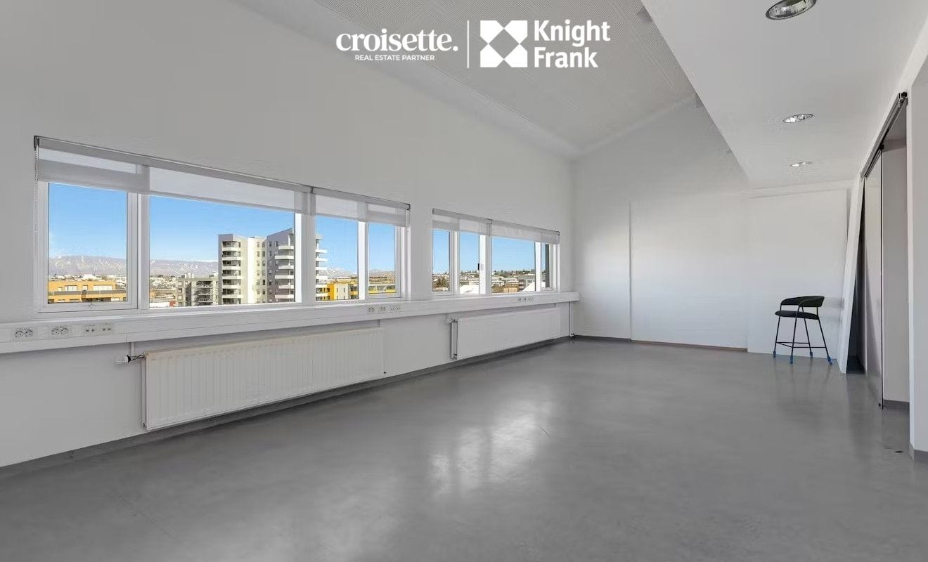 Fljótlega getur losnað í kringum 415 fm skrifstofurými á 3. hæð byggingar (önnur hæð byggingar séð frá ljósmynd). Ris er yfir hluta hæðar. Á hæðinni er stórt opið skrifstofurými ásamt fundarherbergi með góðu útsýni til norðurs, vesturs og suðurs, hátt er til lofts að hluta þar sem ekki er ris. Í risinu er fundarherbergi sem og eldhúsaðstaða og starfsmannaaðstaða.